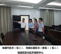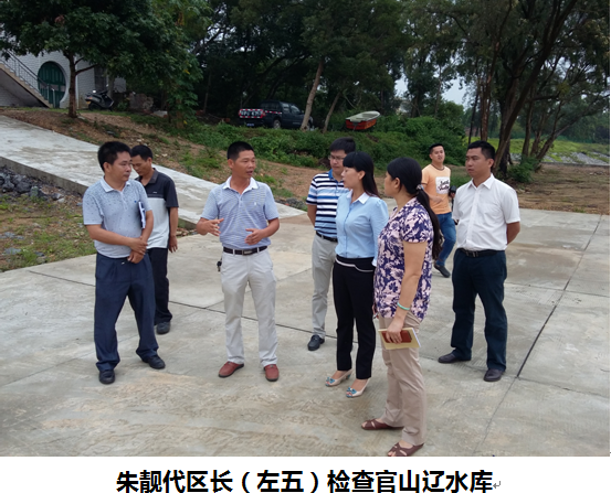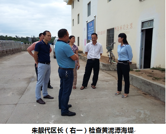 2016年6月16日上午,港口区朱靓代区长一行分别到区防汛抗旱指挥中心、沙潭江水闸、官山辽水库及黄泥潭海堤等地,对港口区防汛工作情况进行检查。期间,朱靓代区长强调:各级、各有关单位一定要高度重视,落实责任,完善应急预案,进一步提高防汛能力,切实加强值班值守,确保我区人民群众的生命财产安全。港口区刘晓红副区长(提名)和区防汛办、光坡镇、企沙镇有关领导陪同检查。
